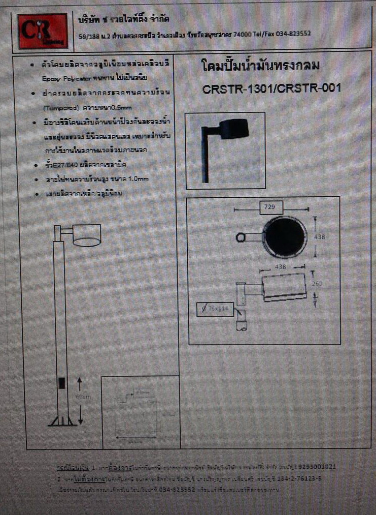 • ตัวโคมผลิตจากอลูมีเนียมอัลลอย