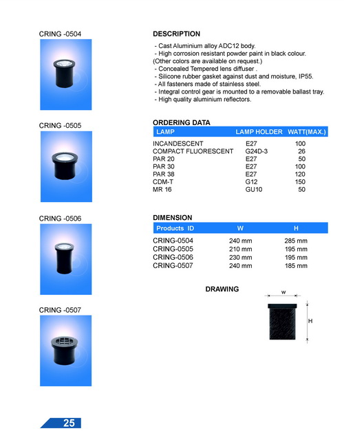 รุ่น : โคมฝั่งพื้นหน้าตะแกรง