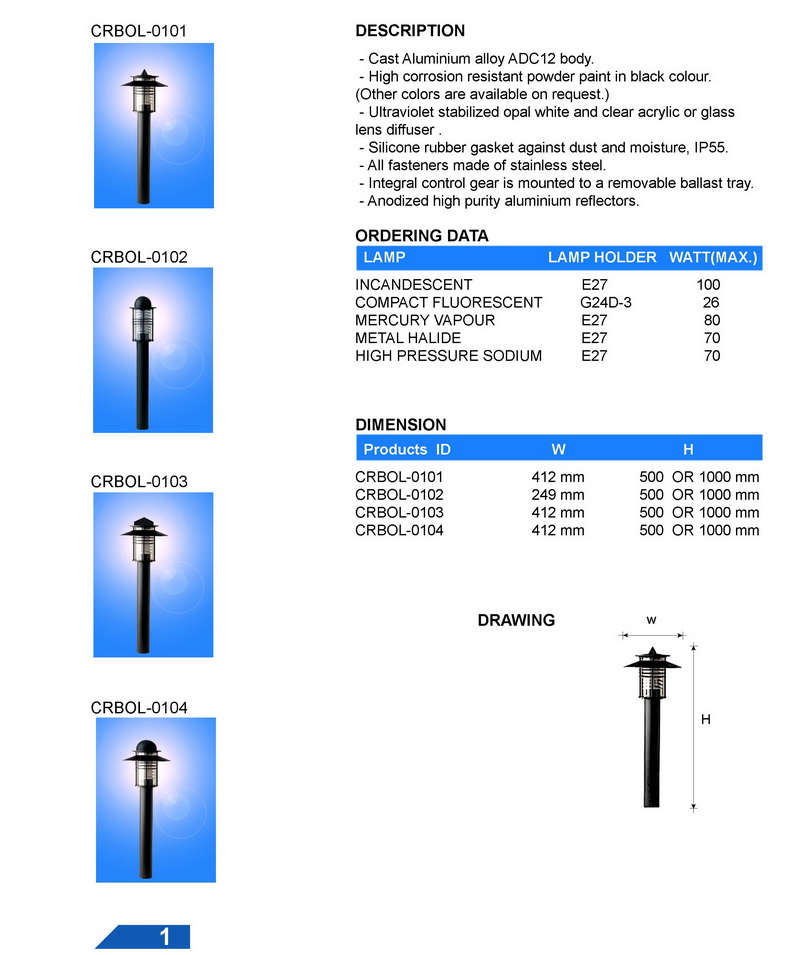 CRBOL-0101 โคมทางเดินมโนราห์ Bollard